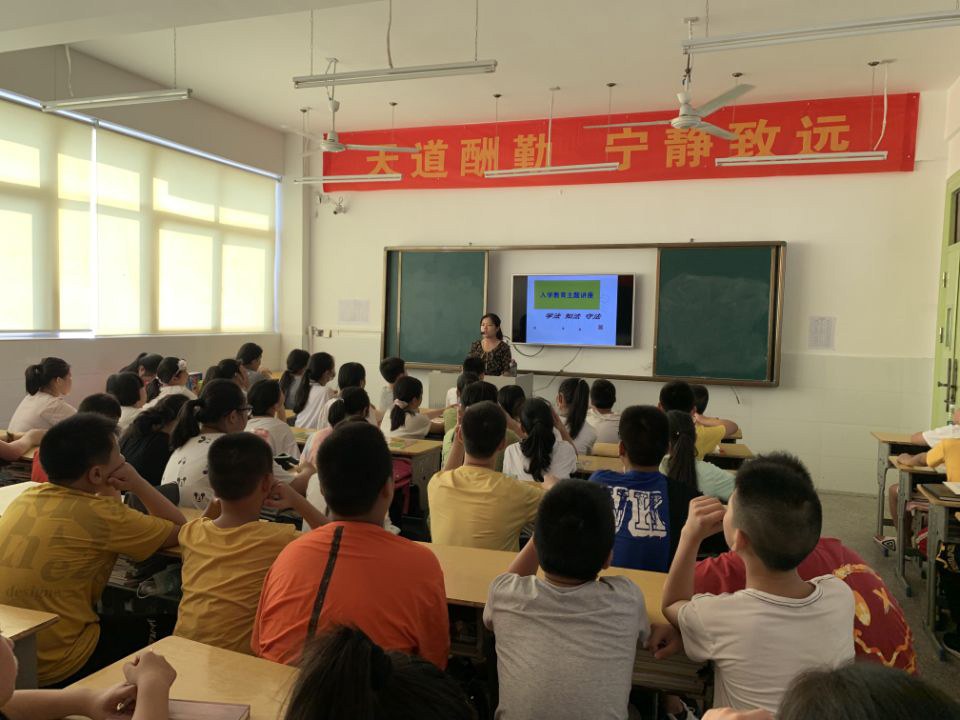 帶著新的目標、新的夢想七年級全體新生來到了黃岡遺愛湖學(xué)校就讀,學(xué)校為了這些同學(xué)們能盡快適應(yīng)初中生活,計劃開展為期兩天的新生入學(xué)教育系列活動,共同開啟同學(xué)們成長的新篇章。2020年9月2日,初中部政教處劉傳蓮老師在七年級教室主持開展了七年級新生入學(xué)教育活動之一——行為習(xí)慣養(yǎng)成教育和法律、防暴報告會,七年級全體新生和各班班主任參加了本次活動。