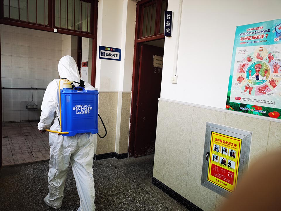進(jìn)入初冬,全球新型冠狀病毒的危險(xiǎn)還沒(méi)解除,雖然湖北新冠大數(shù)據(jù)為,但是黃岡遺愛(ài)湖學(xué)校為了孩子們的健康,讓大家有個(gè)安全、衛(wèi)生、放心的校園環(huán)境,學(xué)校定期對(duì)校園內(nèi)各地方包括教學(xué)樓、學(xué)生宿舍、食堂、存取快遞的地方全面進(jìn)行消毒。做到無(wú)衛(wèi)生死角,讓病毒無(wú)存身之地。讓家長(zhǎng)對(duì)寄宿的孩子們?cè)谖倚5纳、學(xué)習(xí)環(huán)境放心。